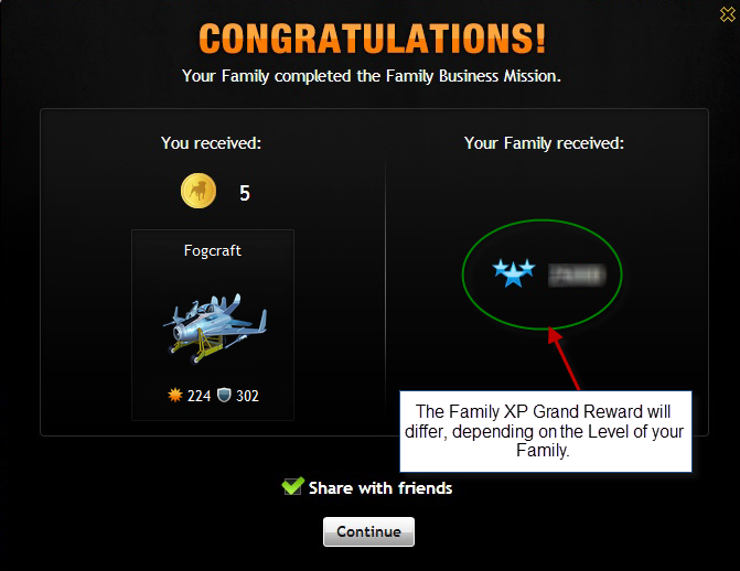 Once your Family completes all 10 Tiers of Family Business (Which are - 5 Might Path Tiers + 5 Muscle Path Tiers), your Family will receive additional Family XP (depending upon the Level of your Family) and all Family members will be eligible to collect 1 Fog Craft (224/302) and 5 Reward Points.