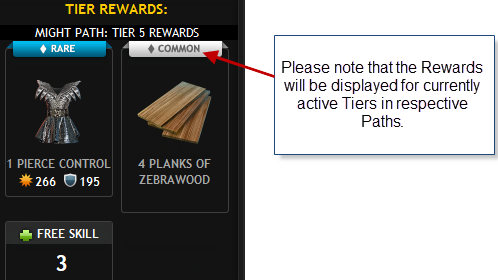 The Rewards (which are displayed on the right of the screen) will change according to the currently activeTiers in respective Paths.